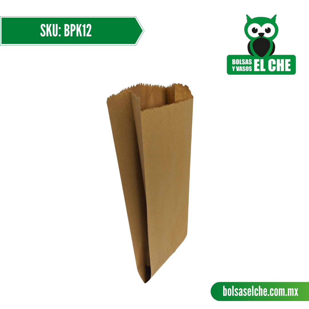 COD: BPK12 - BOLSA DE PAPEL COLOR CAFÉ KRAFT N. 12 - PAQ. CON 100 PZAS