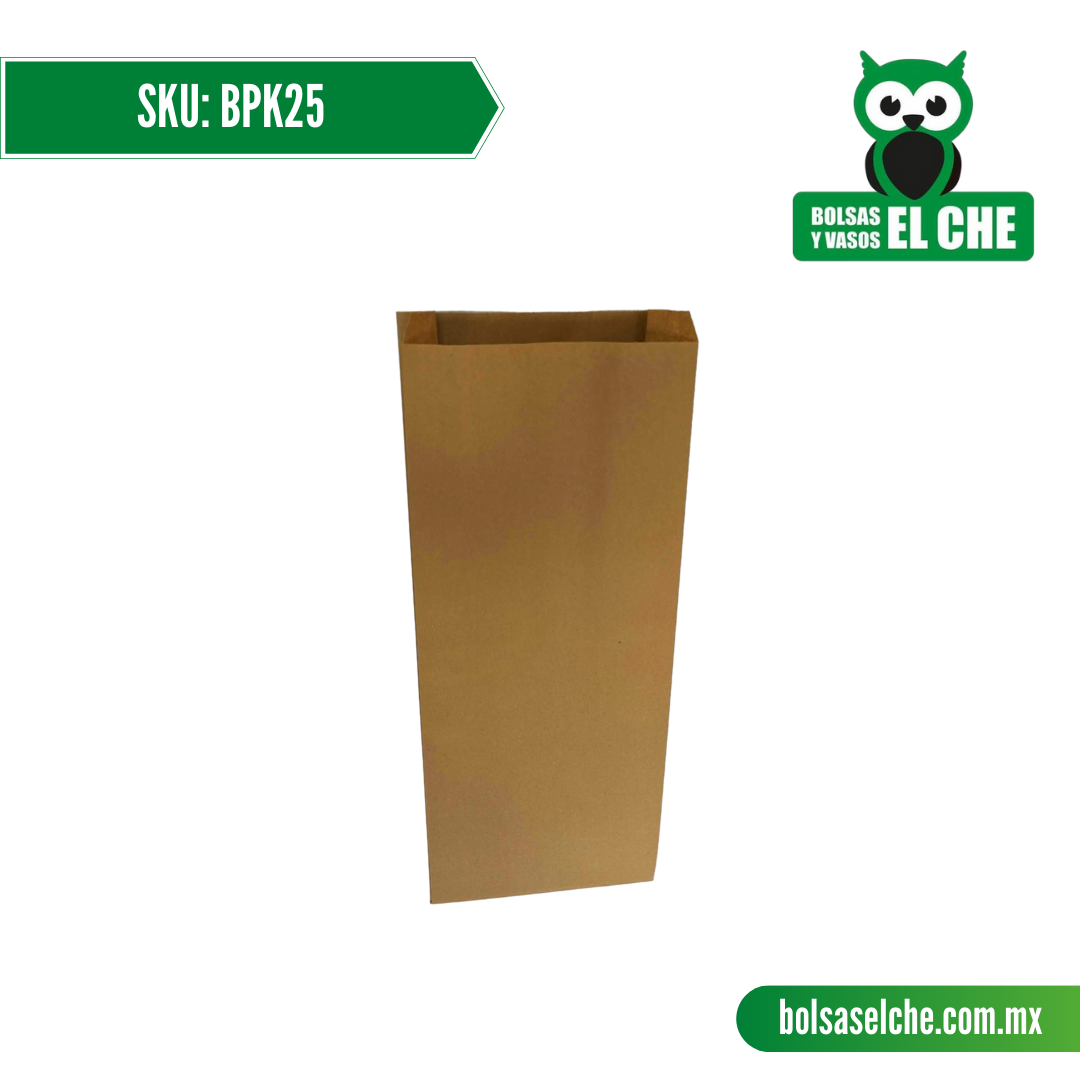 COD: BPK25 - BOLSA DE PAPEL COLOR CAFÉ KRAFT N. 25 - PAQ. CON 100 PZAS