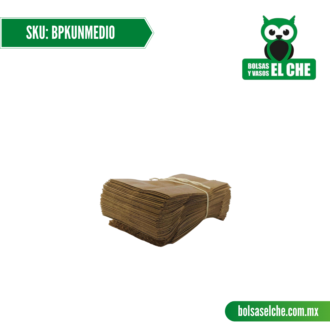 COD: BPKUNMEDIO - BOLSA DE PAPEL COLOR CAFÉ KRAFT No. 1/2 - PAQ. CON 100 PZAS