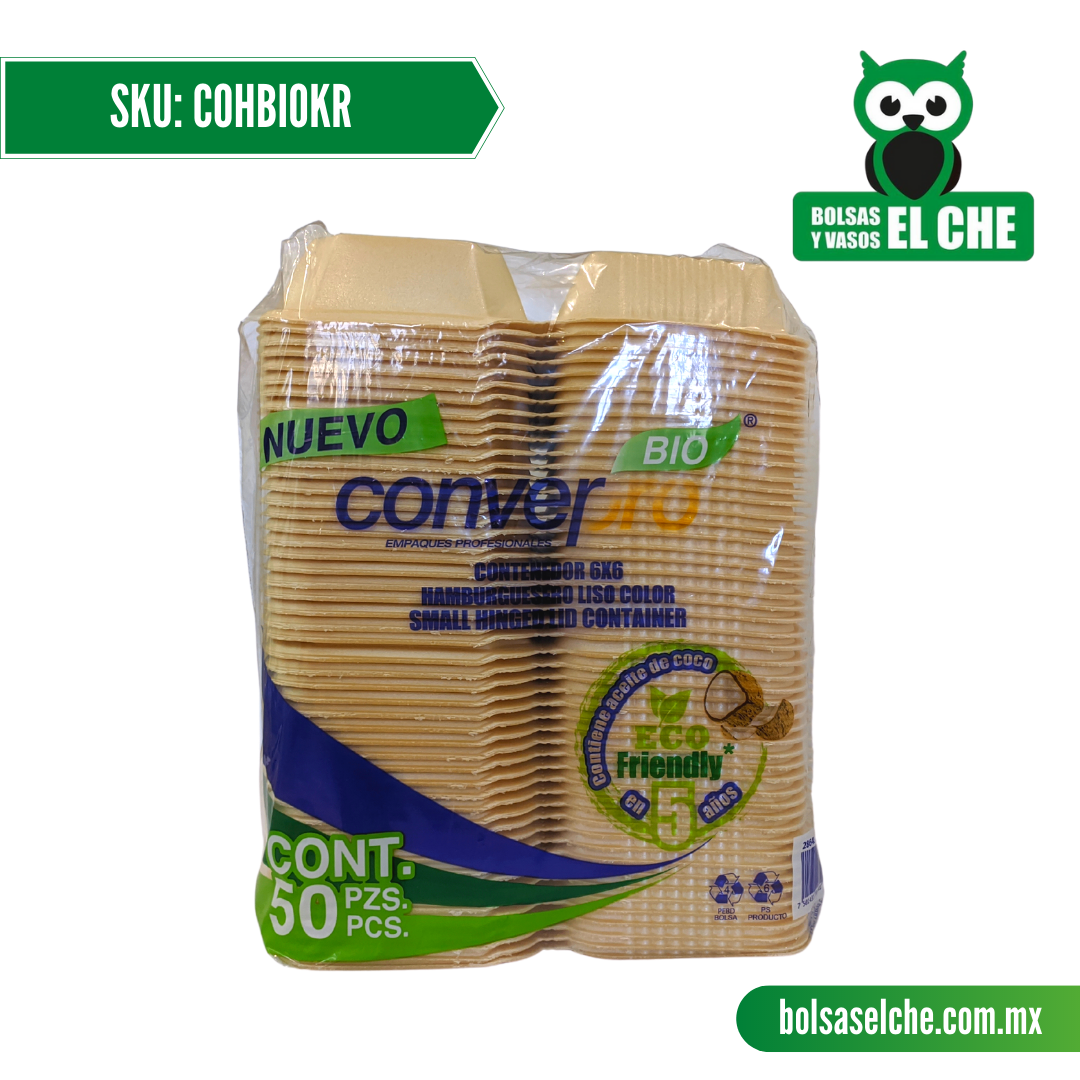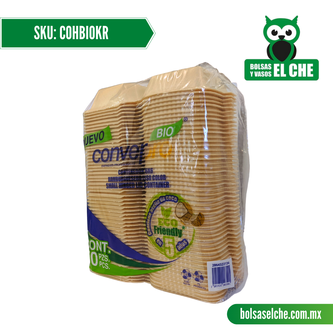 COD: COHBIOKR - CONTENEDOR BIODEGRADABLE PARA HAMBURGUESA - CONVERMEX - PAQ. 25 PZAS.
