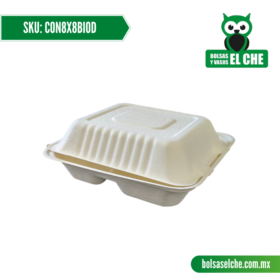 COD: CON8X8BIOD - CONTENEDOR BIODEGRADABLE CON DIVISIÓN - MEDIDA 8CM X 8CM - CONVERMEX - GABAZO DE CAÑA - - PAQ. CON 25 PZS