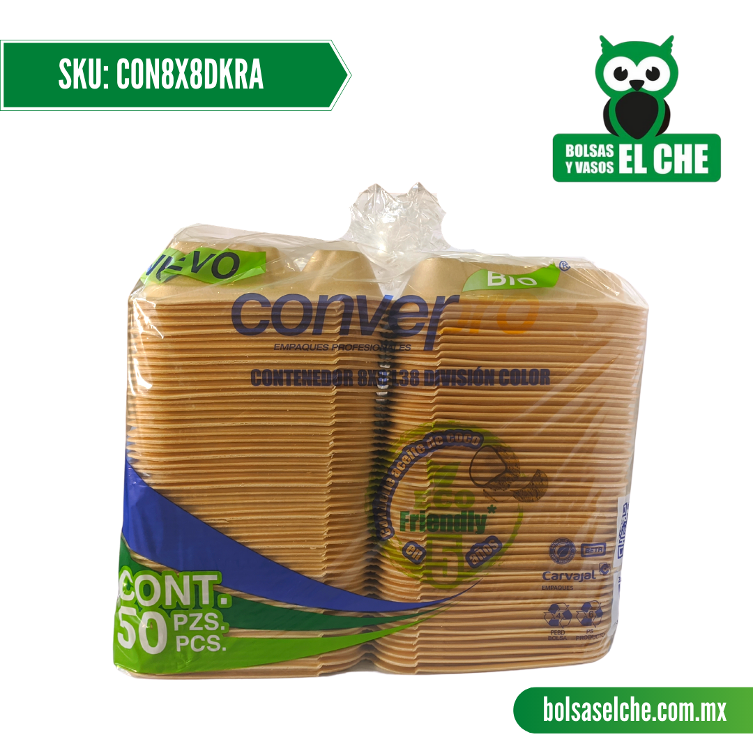COD: CON8X8DKRA - CONTENEDOR BIODEGRADABLE CON DIVISION - MEDIDA 8CM X 8CM - MARCA CONVERMEX - PAQ. CON 50 PZAS.